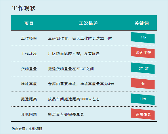 在貨物搬運中,該基地整體工況主要特點是工作時間長、貨物重、搬運距離長: