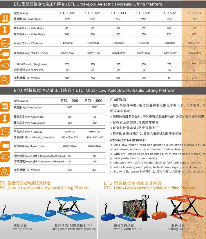 超低的自身高度,能適應(yīng)各種液壓搬運(yùn)車(chē)的上下,無(wú)需地坑,方便設(shè)備的移動(dòng);